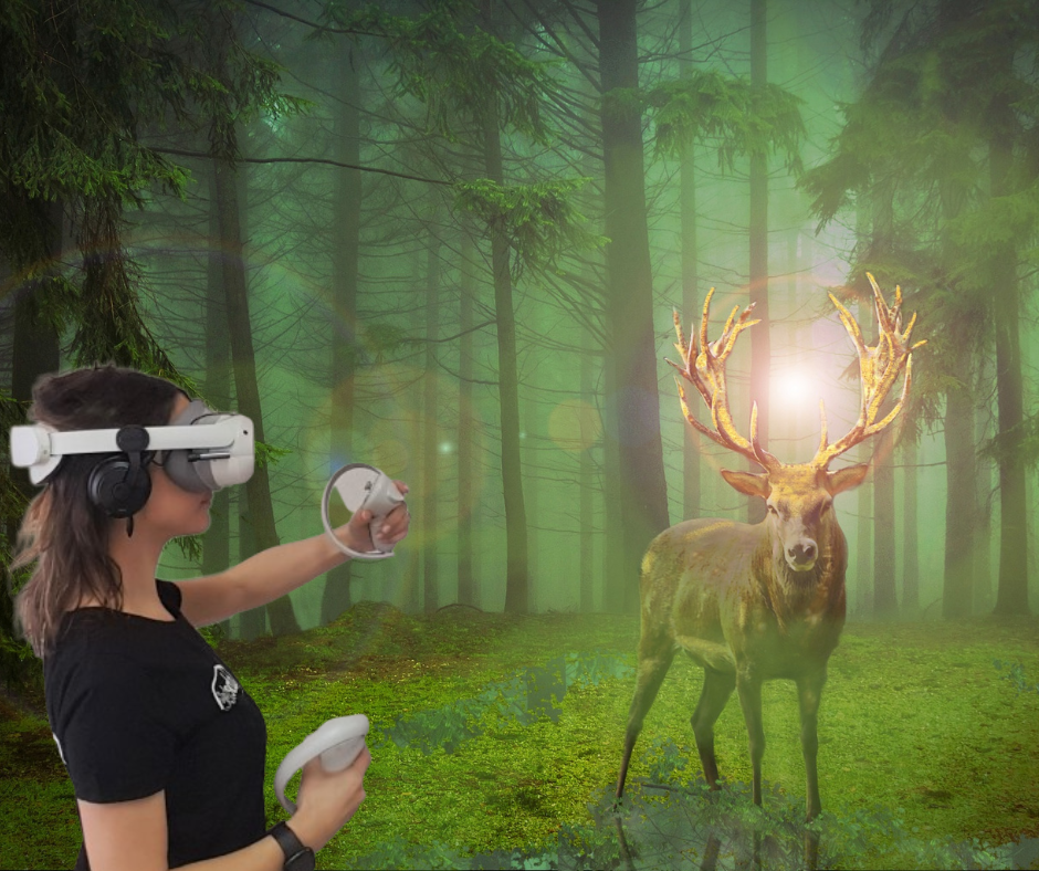 Ein echtes Gewehr am Anschlag, die VR-Brille auf dem Kopf und stehend auf dem Schießstand. FDann kommmt von rechts ein Bär - wer ist schneller: das Tier oder ihr? Erlebt unseren realitätsnahen Jagd-Simulator (ganz ohne echtes Blutvergießen)