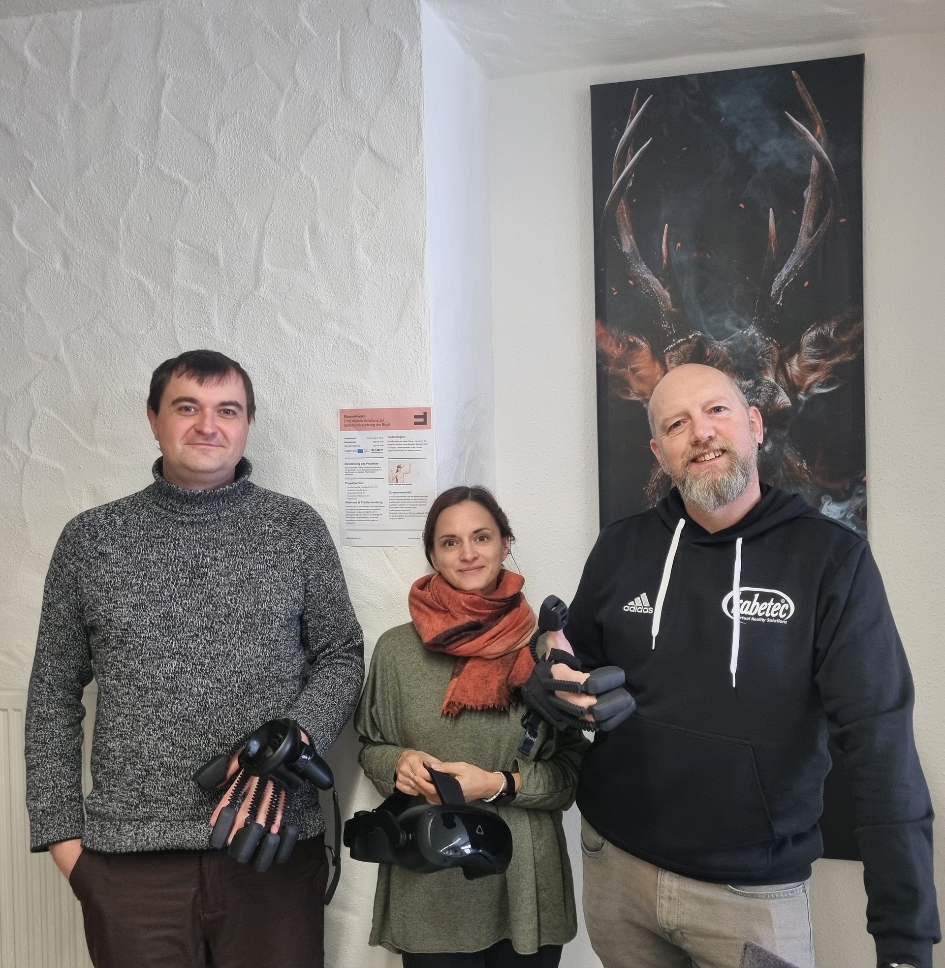 Am 16. Oktober fand an der Fachhochschule Vorarlberg (FHV) der Aktionstag zur Brustgesundheit statt – ein Tag voller spannender Vorträge, innovativer Ideen und intensiver Gespräche über Aufklärung, Früherkennung und Forschung. Wir durften als Projektpartner des MammAware-Forschungsprojektes vor Ort dabei sein und uns mit Fachleuten, Studierenden und Interessierten über die Rolle digitaler Technologien in der Gesundheitsbildung austauschen. Forschung trifft Praxis – Wissen sichtbar machen Am Aktionstag "Tag der Brustgesundheit" bot die FHV ein abwechslungsreiches Programm. Expert:innen aus Medizin, Pflege und Forschung gaben Einblicke in aktuelle Entwicklungen und Präventionsstrategien. Besonders beeindruckend war der Vortrag von Dr. Frank Hofmann von Discovering Hands, der die entscheidende Bedeutung der Früherkennung hervorhob. Ein zentrales Thema war das Interreg-Forschungsprojekt „MammAware“, das von Dr. Hubert Jocham vorgestellt wurde. Ziel des Projekts ist es, mithilfe moderner Technologien – darunter auch Virtual-Reality-Elemente – neue Wege der Aufklärung und Schulung zu schaffen. Besonders spannend: Die Einbindung von sehbehinderten und blinden Frauen mit ihrem außergewöhnlich ausgeprägten Tastsinn. In Kooperation mit Discovering Hands werden sogenannte medizinisch-taktile Untersucherinnen (MTU) ausgebildet, die kleinste Gewebeveränderungen in der Brust frühzeitig ertasten können. Ein beeindruckendes Beispiel dafür, wie Vielfalt und Technologie gemeinsam Prävention stärken können. Daher war das besondere Highlight der musikalische Auftritt der blinden Merve, die zukünftig im Rahmen des Forschungsprojektes als MTU ausgebildet wird.